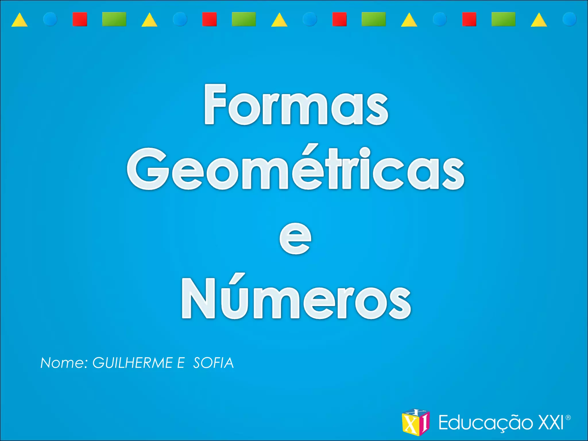 O documento apresenta uma série de exercícios de matemática e geometria para crianças, incluindo contar e identificar figuras geométricas como triângulos, quadrados e círculos, além de exercícios de correspondência numérica e escrita de números.