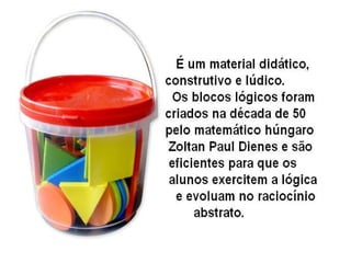 O documento descreve uma lição de matemática para alunos do 2o ano sobre figuras geométricas. A lição tem como objetivos identificar relações entre figuras geométricas, conhecer e distinguir diferentes figuras geométricas, e usar blocos lógicos e tangram para formar figuras. O material necessário inclui blocos lógicos, tangram colorido e atividades de desenho.