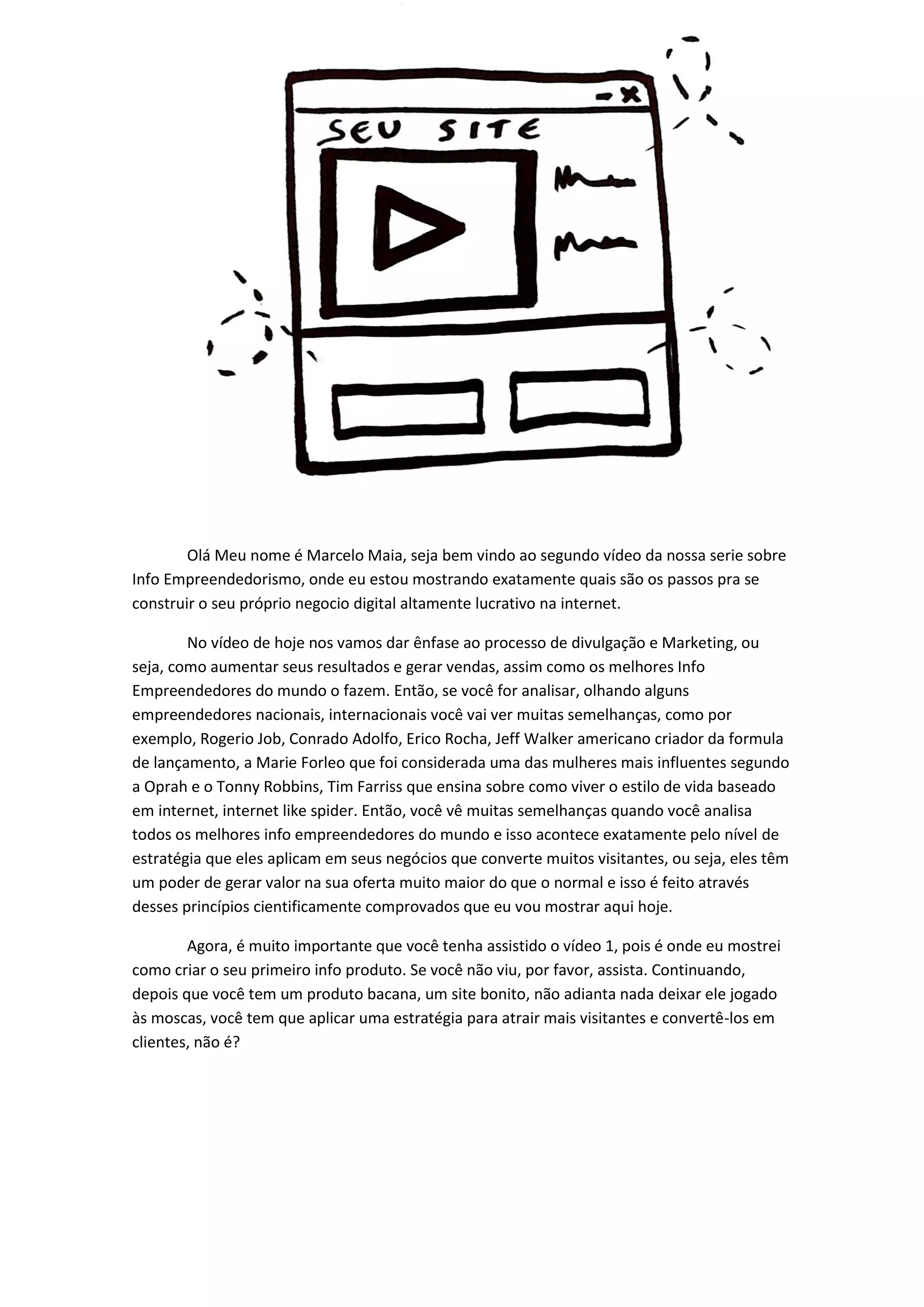 O documento discute estratégias de marketing digital para aumentar vendas, incluindo gatilhos mentais como autoridade, solução de problemas, benefícios emocionais, contraste, comunidade, consistência, garantias, repetição, urgência, exclusividade, escassez e proatividade. O documento também descreve uma estratégia de lançamento sequencial de vídeos para gradualmente aumentar o desejo de compra do cliente.