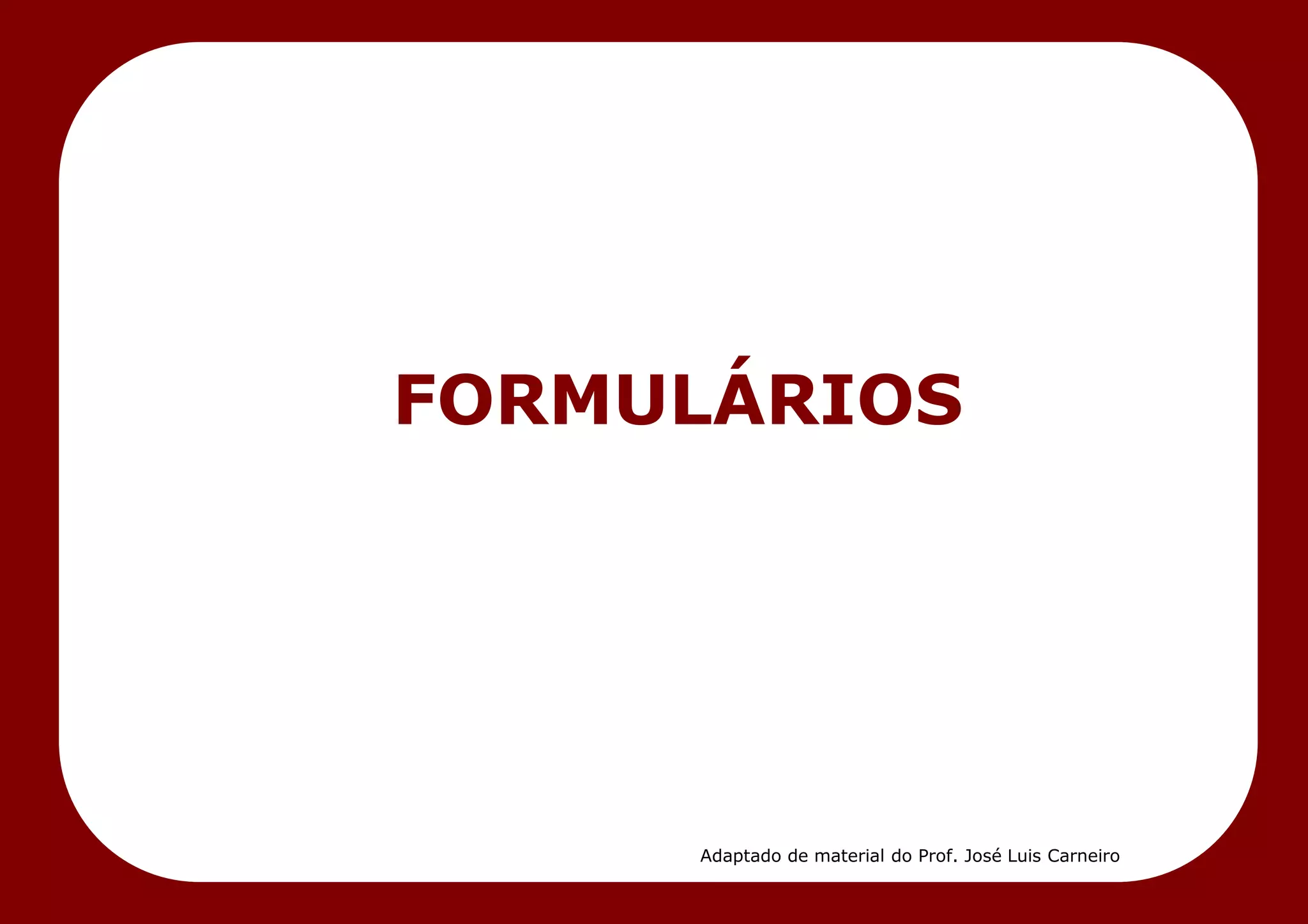 O documento discute o que são formulários, definindo-os como instrumentos do processo administrativo constituídos de palavras, números, espaços e campos. Explica também os tipos de formulários, requisitos para sua elaboração, etapas para criação, características de um bom formulário e objetivos do controle de formulários.