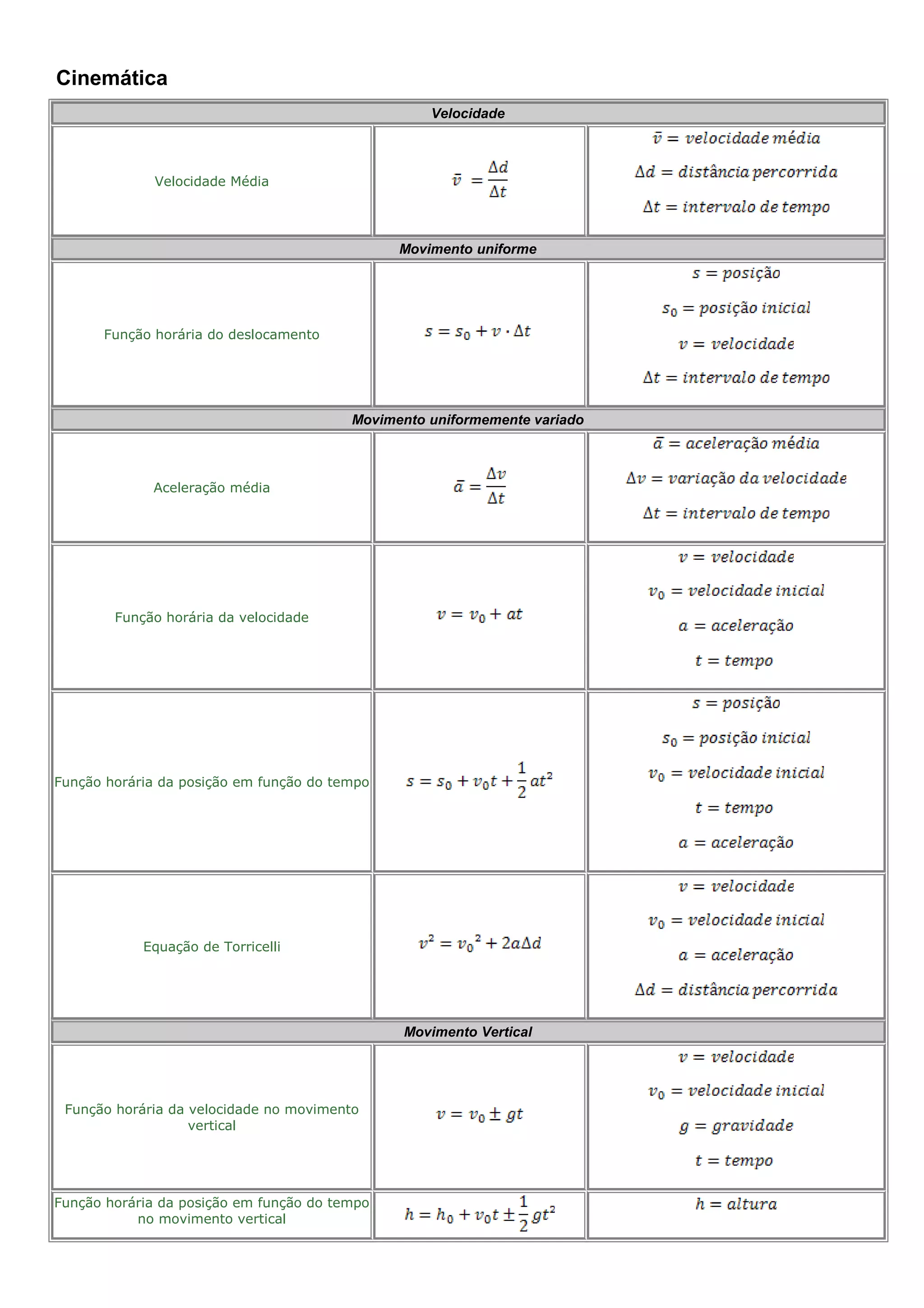 O documento aborda conceitos fundamentais da física, incluindo cinemática, dinâmicas das forças, termodinâmica, ondulatória, eletrostática e magnética, com explicações detalhadas sobre leis e princípios como as de Newton, Kepler, e a termodinâmica. Ele também descreve fenômenos como reflexão e refração da luz, eletrização, e o comportamento de ondas e gases. Além disso, aborda mecanismos incluindo máquinas térmicas e circuitos elétricos, integrando teoria e aplicações práticas.