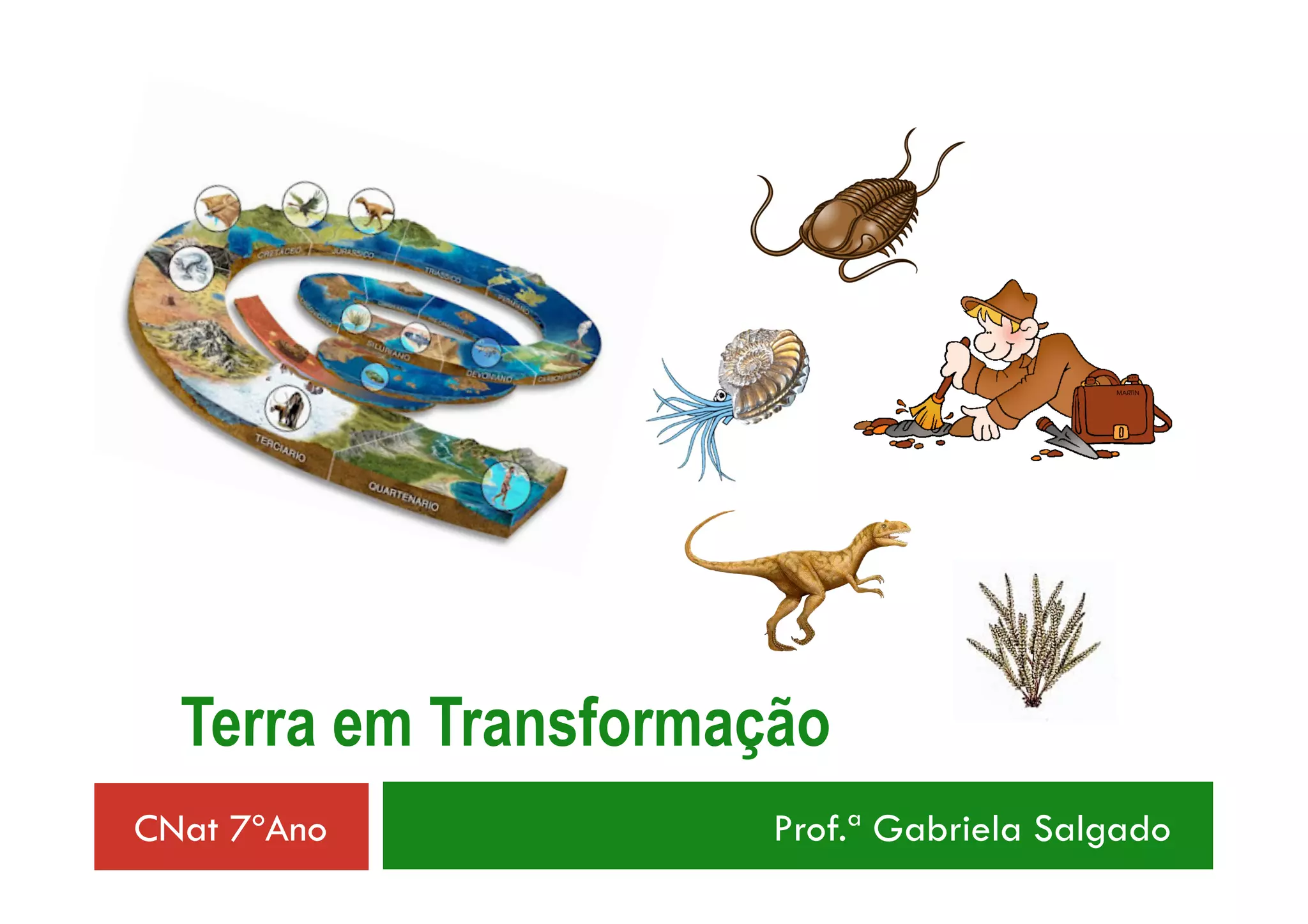 Este documento apresenta os conceitos fundamentais sobre fósseis e sua importância para compreender a história da Terra. Explica o que é paleontologia e fóssil, os diferentes tipos de fósseis e processos de fossilização. Também destaca a contribuição dos fósseis para reconstituir ambientes, datas e a evolução dos seres vivos ao longo do tempo geológico.