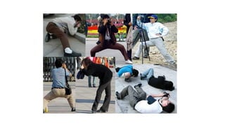 O documento discute técnicas de fotografia com smartphones, com o objetivo de qualificar a produção de imagens feitas com esses dispositivos móveis. Aborda conceitos como regras de composição, uso da luz, dicas para melhorar a qualidade das fotos e potencializar a criatividade.