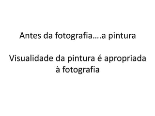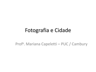 O documento descreve a evolução da fotografia de cidades ao longo do tempo, desde as primeiras pinturas que retratavam paisagens urbanas, passando pelas primeiras fotografias de cidades no século XIX, fotógrafos modernistas do início do século XX, até fotógrafos contemporâneos e seus projetos de intervenção urbana.