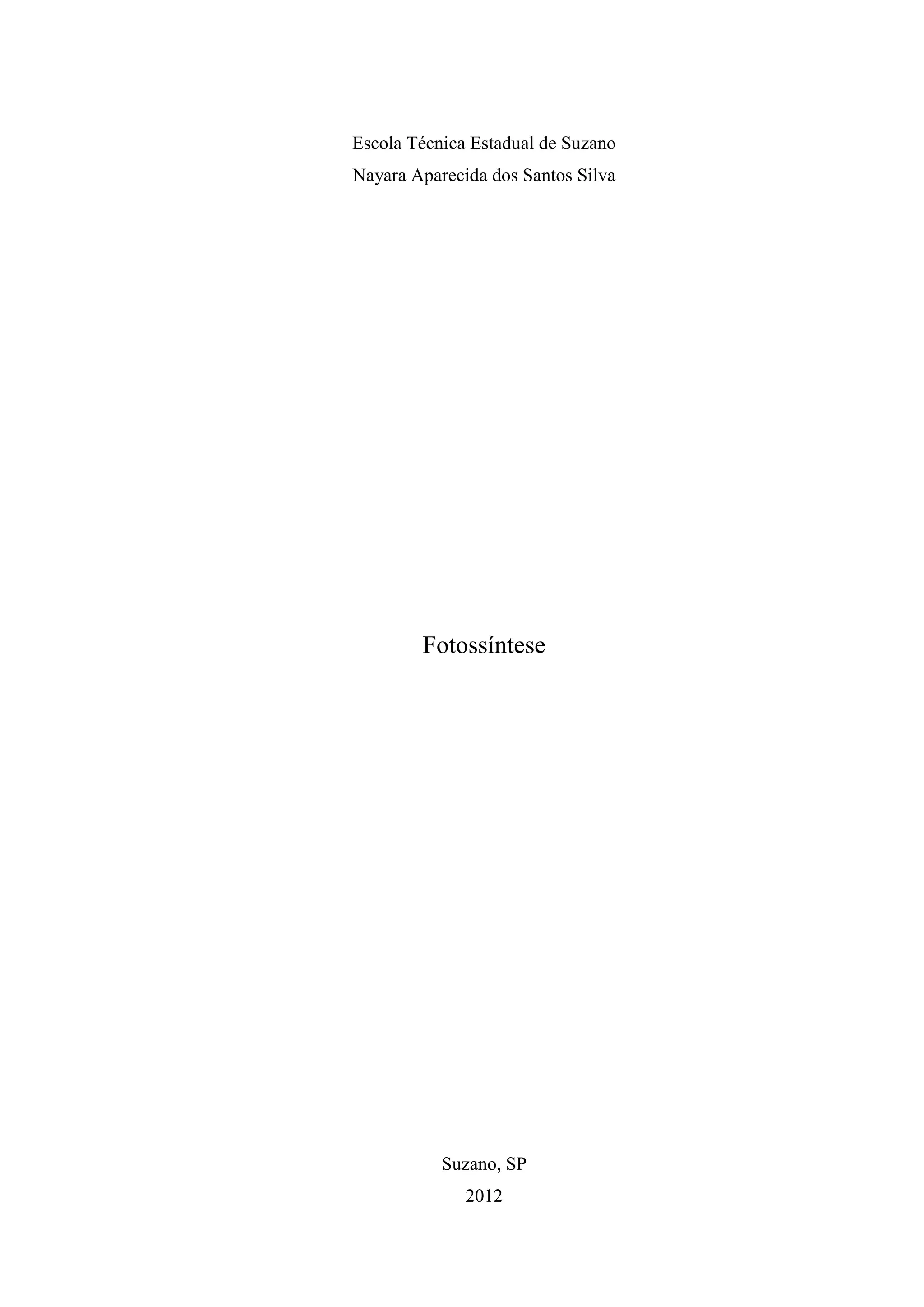 O documento descreve o processo da fotossíntese realizado pelas plantas, dividido nas etapas fotoquímica e química. A fotossíntese converte energia solar, dióxido de carbono e água em glicose e oxigênio, ocorrendo nos cloroplastos das plantas. Sua descoberta se deu ao longo de séculos por diversos cientistas, e é essencial para a vida na Terra ao fornecer oxigênio e alimento.