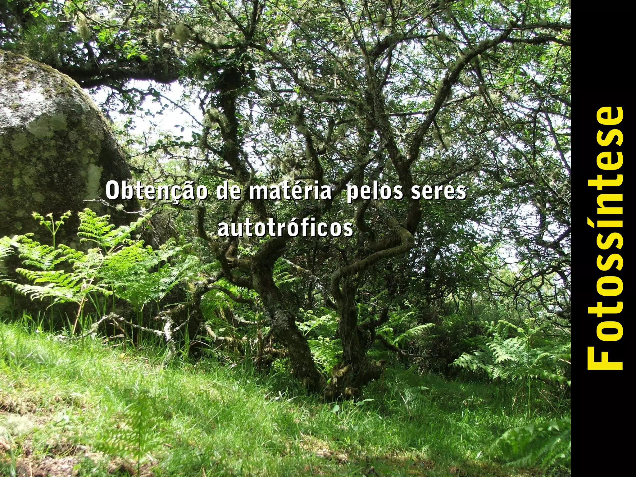O documento descreve o processo de fotossíntese realizado por seres autotróficos. A fotossíntese envolve duas fases principais: 1) a fase fotoquímica, na qual a energia luminosa é captada e transformada em energia química na forma de ATP e NADPH; 2) a fase química ou ciclo de Calvin, onde o CO2 é incorporado para formação de compostos orgânicos usando a energia de ATP e NADPH. O documento também aborda brevemente a quimiossínt