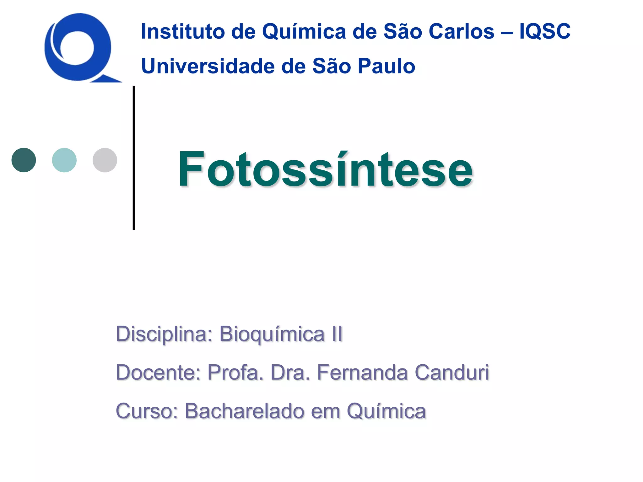 O documento descreve os processos de fotossíntese, incluindo a anatomia dos cloroplastos, as reações de luz que produzem ATP e NADPH, e as reações de escuro que usam esses produtos para fixar carbono através do ciclo de Calvin. Também discute a fotorrespiração e as vantagens das plantas C3 e C4 em diferentes climas.