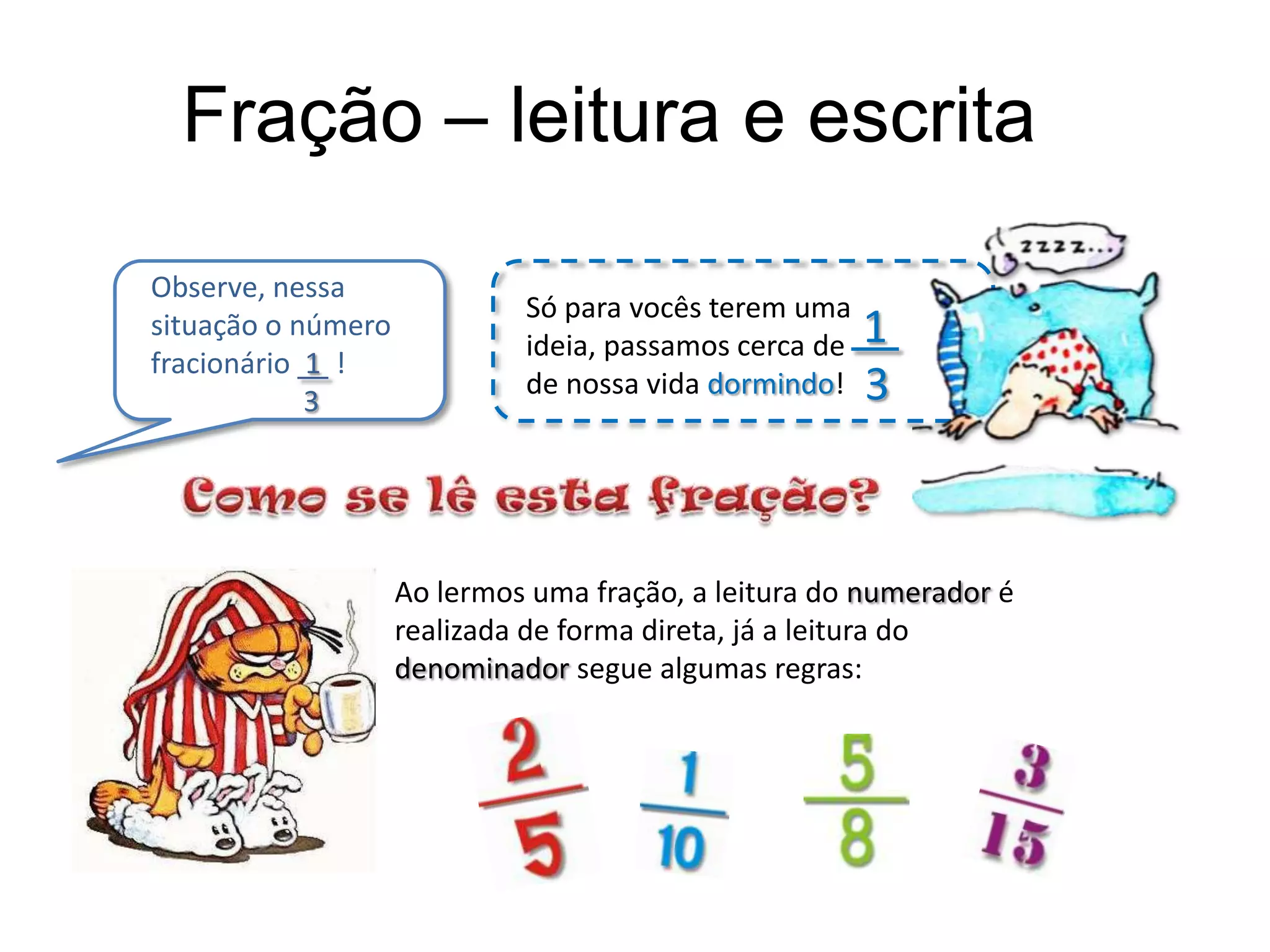 Ao lermos uma fração, a leitura do numerador é