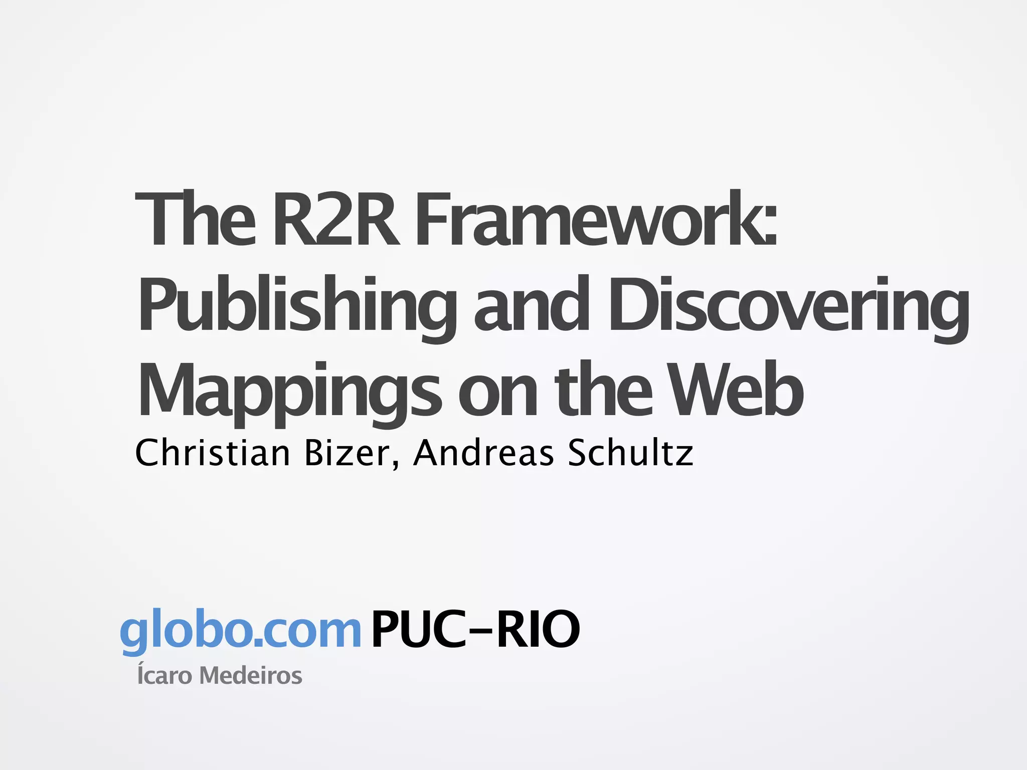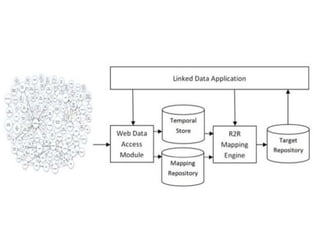 O documento propõe o framework R2R para publicar e descobrir mapeamentos entre dados heterogêneos na web de forma distribuída. A linguagem R2R permite mapear vocabulários flexivelmente e compor mapeamentos parciais usando uma heurística de qualidade. Uma engine de mapeamento usa os mapeamentos R2R para transformar dados da web em um vocabulário-alvo mantido em um repositório.