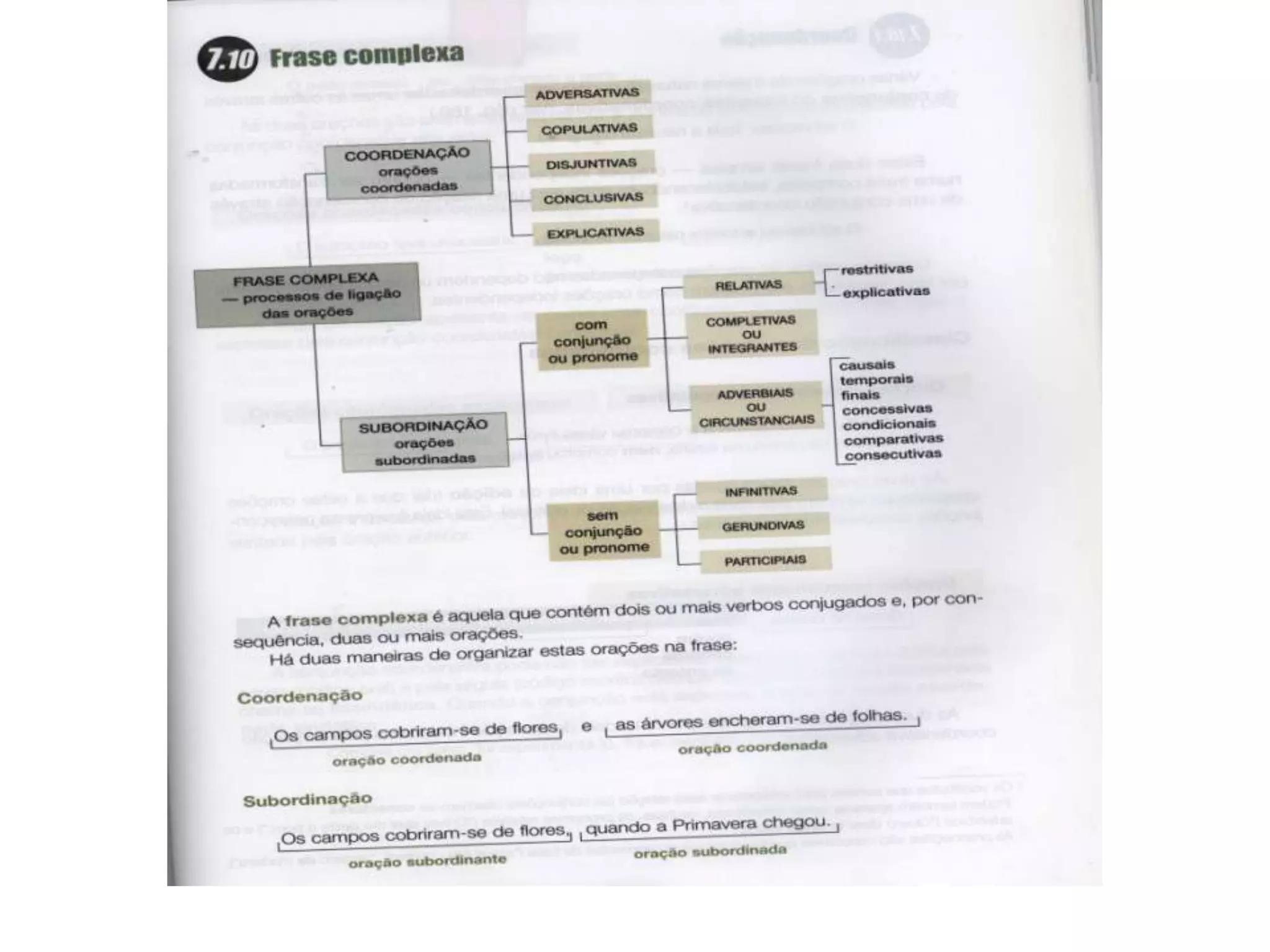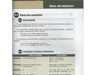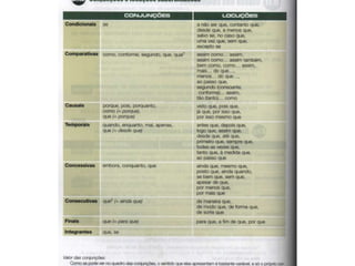 O documento descreve os tipos de orações coordenadas e subordinadas. Apresenta as principais conjunções e classifica as orações coordenadas em copulativas, adversativas, disjuntivas, conclusivas e explicativas. Nas subordinadas, destaca-se as relativas, completivas, adverbiais, infinitivas, gerundivas e participiais.