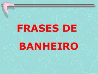 O documento contém várias frases curtas encontradas em banheiros públicos sobre o ato de defecar, como "Neste lugar sagrado, toda vaidade se acaba" e "Cagar é a lei do mundo, cagar é a lei do universo". As frases abordam temas como a igualdade quando se está evacuando, dificuldades durante o ato e comparações entre defecar e outros atos.