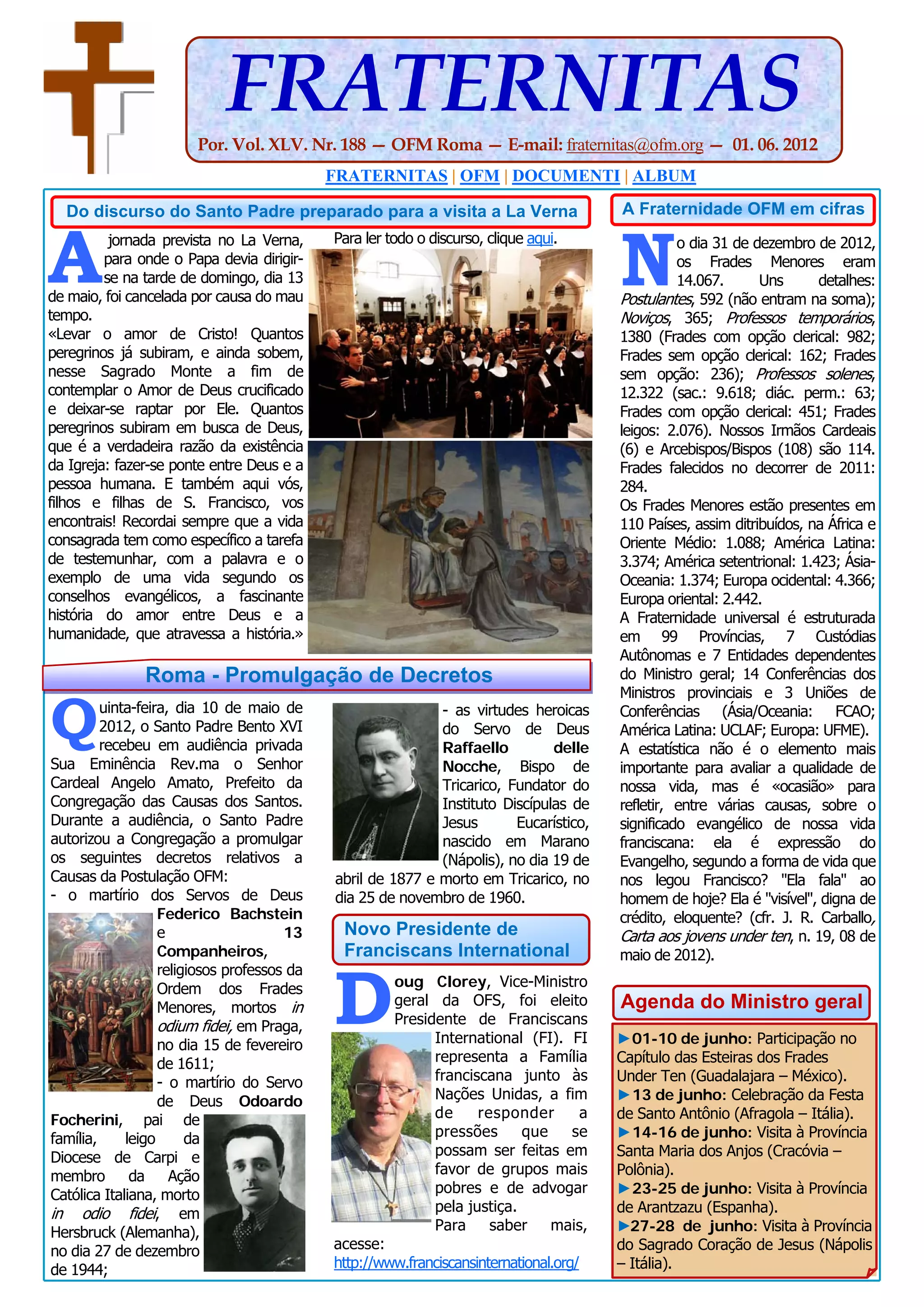 2) Os Frades Menores totalizavam 14.067 no fim de 2012, presentes em 110 países.