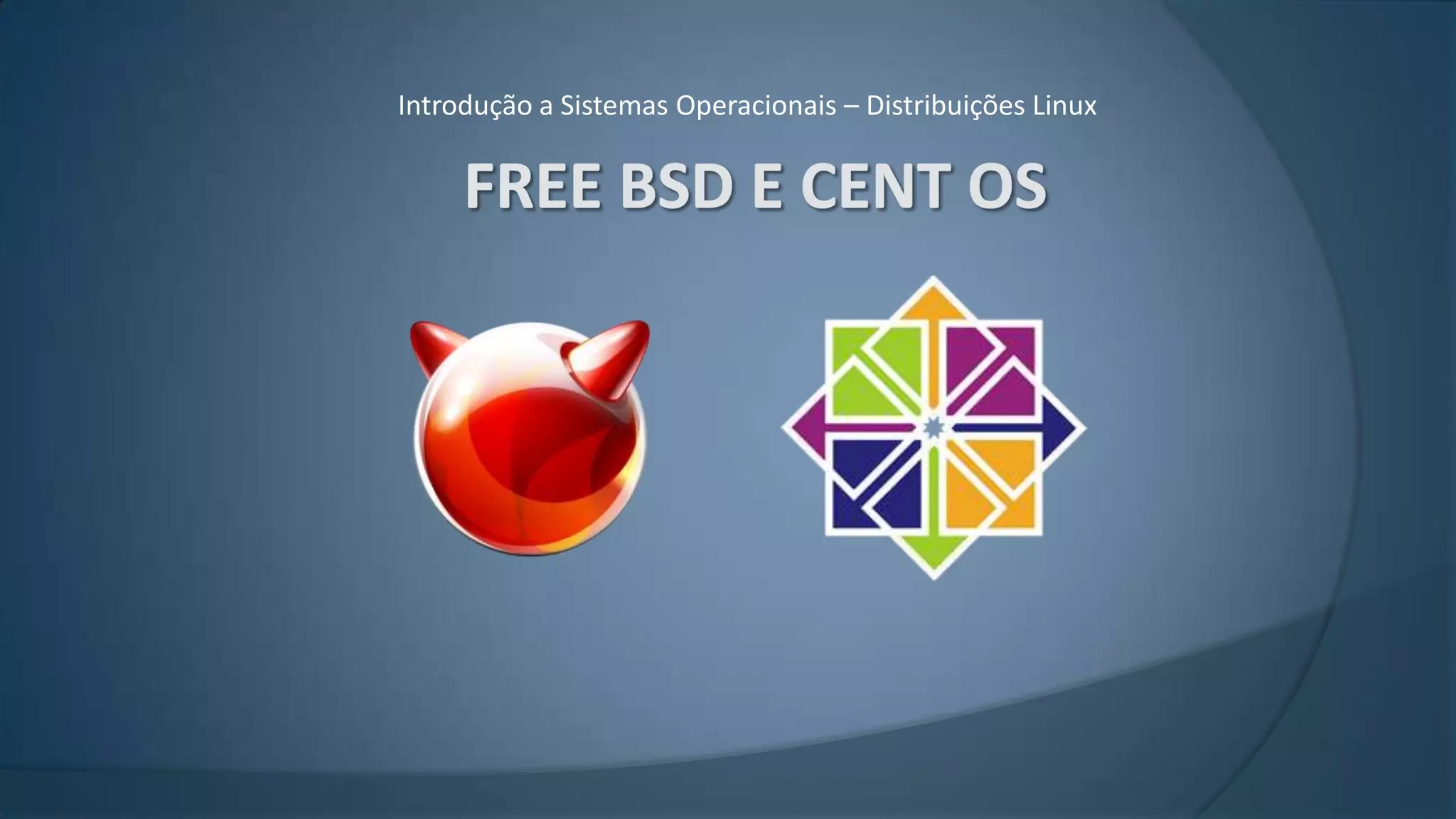 O documento apresenta informações sobre o FreeBSD e o CentOS, duas distribuições Linux gratuitas. O FreeBSD é um sistema operacional BSD completo e robusto com suporte TCP/IP, enquanto o CentOS é uma distribuição derivada do Red Hat Enterprise Linux mantida por voluntários. Ambos fornecem compatibilidade binária com aplicativos Linux e possuem comunidades ativas de usuários e desenvolvedores.