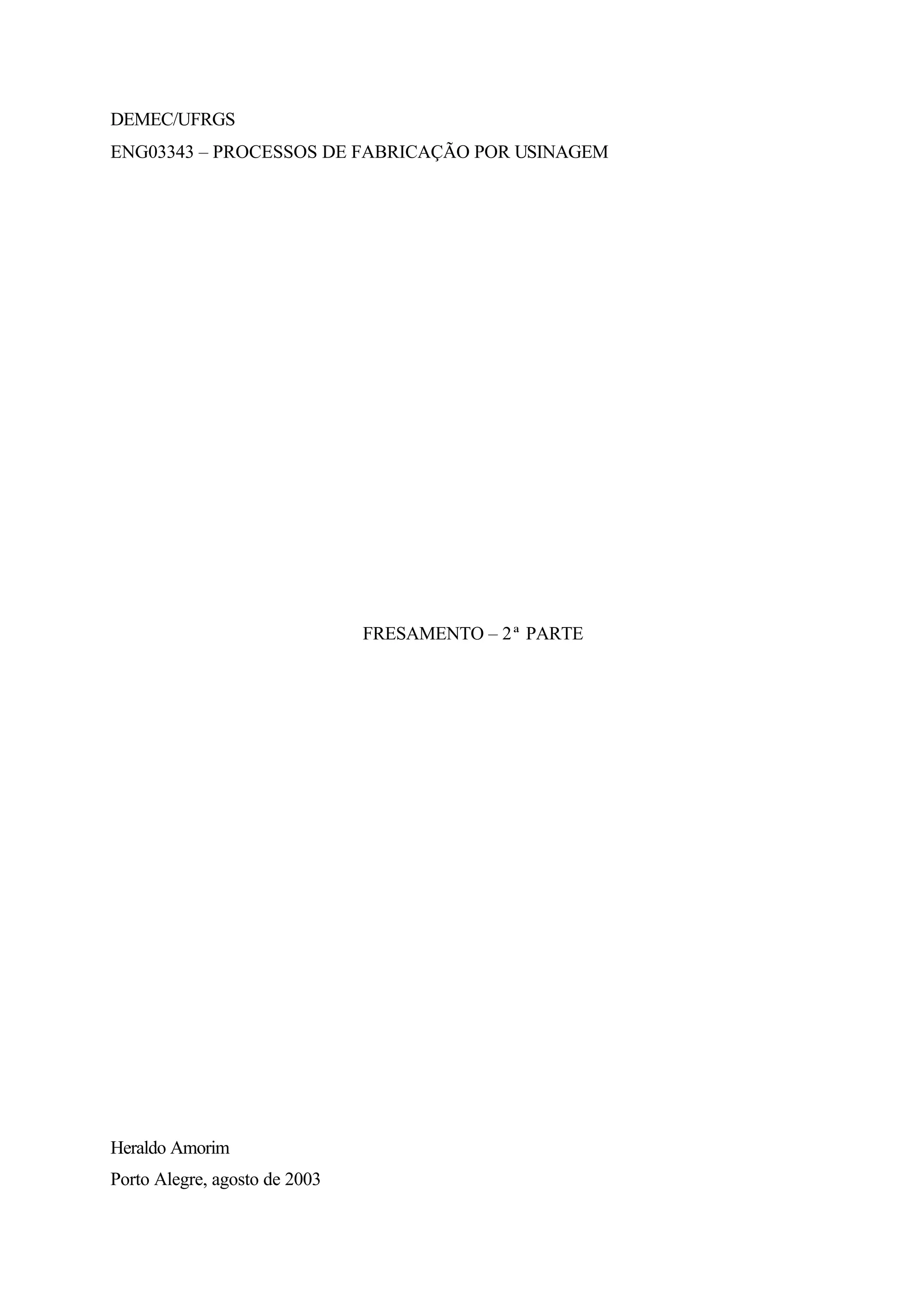 Este documento discute considerações sobre o fresamento frontal, incluindo a posição correta da fresa em relação à peça para evitar danos, e como a geometria da fresa afeta a qualidade do corte. Também aborda como calcular a rugosidade teórica do fresamento e fatores que afetam o acabamento superficial real obtido.