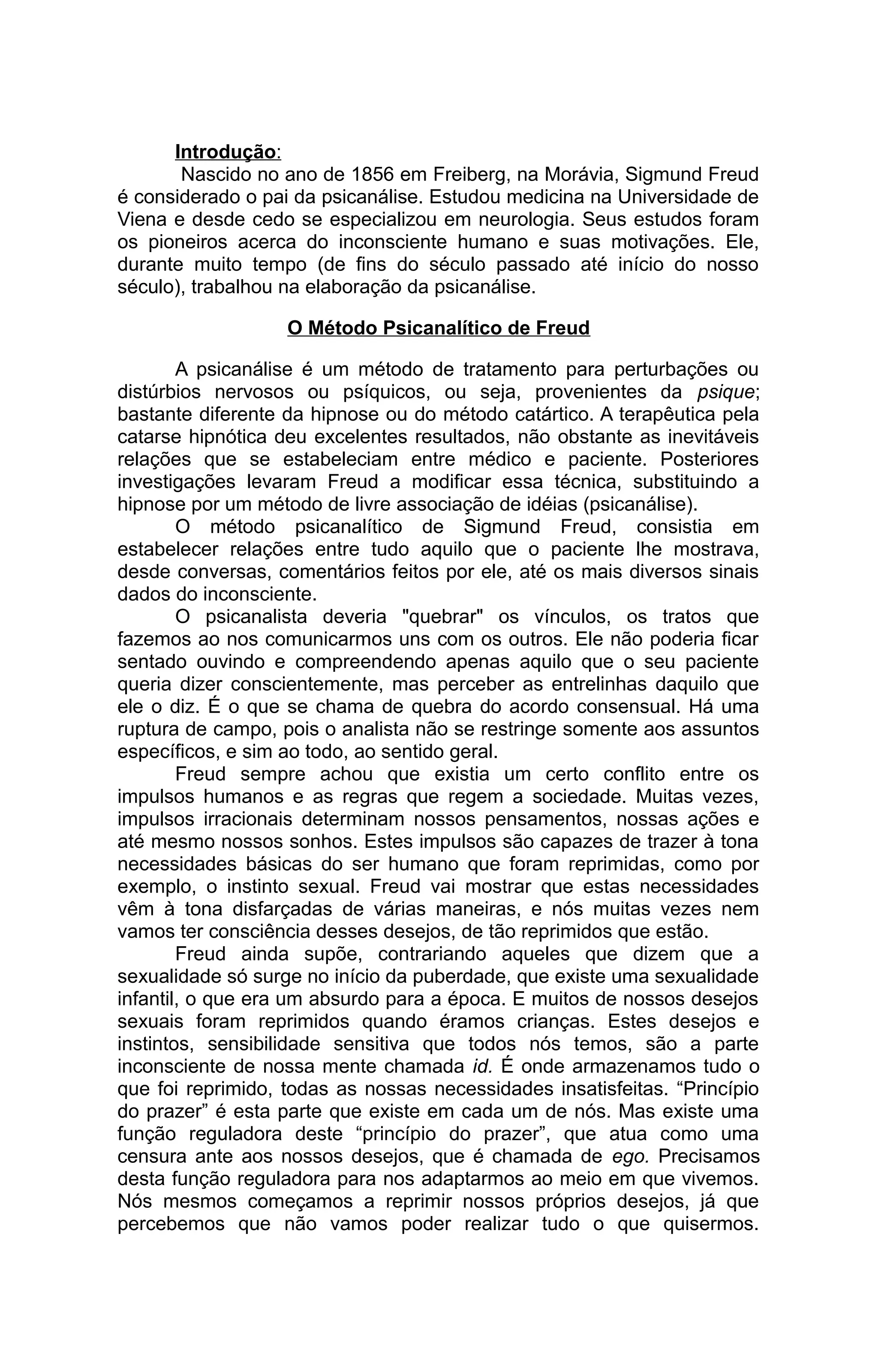 Sigmund Freud é considerado o pai da psicanálise. Ele desenvolveu um método de tratamento baseado na livre associação de ideias e na interpretação dos sonhos e atos falhos para ajudar os pacientes a entenderem seus desejos reprimidos e traumas do passado. A psicanálise se baseia nos pilares da censura, dos instintos sexuais inconscientes e da transferência no relacionamento com o analista.