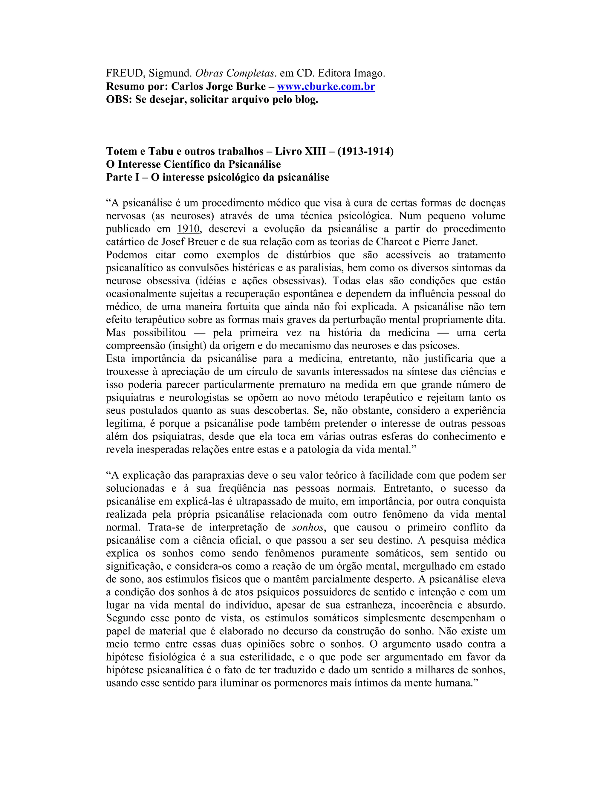 O documento discute a importância da psicanálise como um procedimento médico para a cura de doenças nervosas, enfocando suas interações com outras disciplinas. Sigmund Freud destaca a interpretação de sonhos e a relação entre sexualidade e saúde mental como aspectos centrais da prática psicanalítica. Além disso, o texto aborda as resistências enfrentadas pela psicanálise na comunidade científica e seu papel como mediadora entre biologia e psicologia.