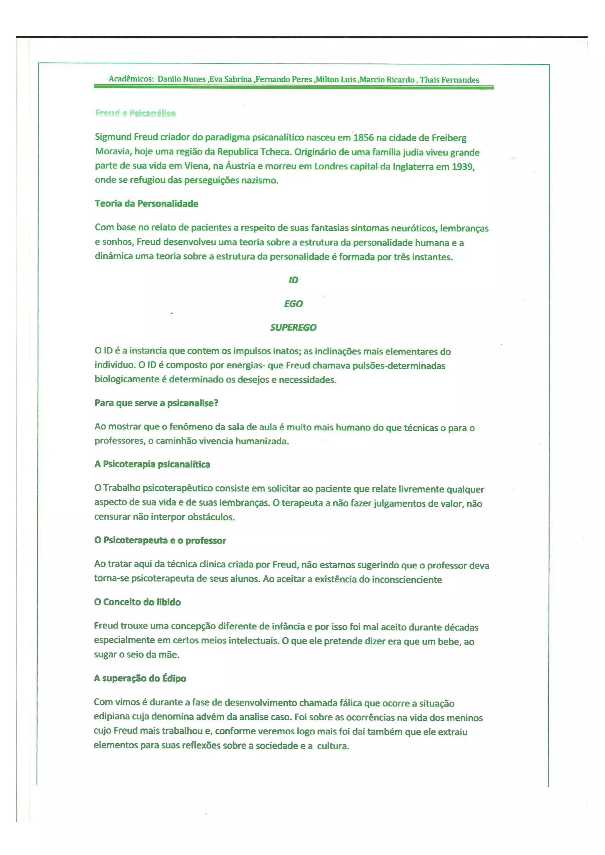 Resumo feito por grupo na discussão de Freud