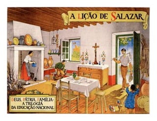 O documento aborda a história da República Portuguesa desde a sua proclamação em 5 de outubro de 1910, destacando eventos importantes como a I Guerra Mundial, a introdução da rádio e a ditadura nacional. Também menciona figuras significativas, como presidentes e cientistas, além das aparições de Fátima e o impacto da gripe espanhola. O texto culmina com a análise do regime de Salazar e seu autoritarismo até 1974.