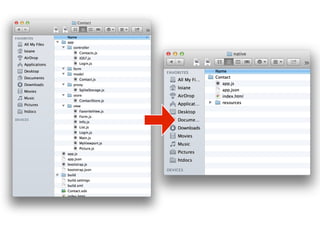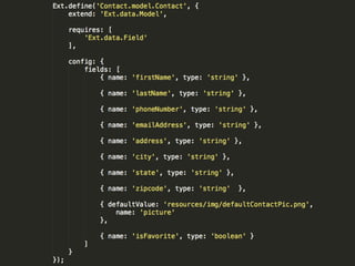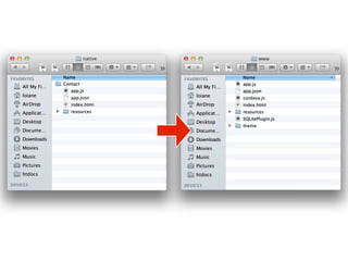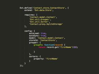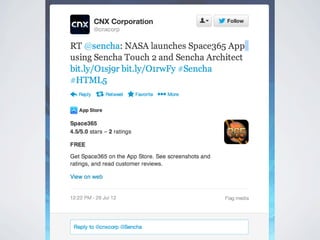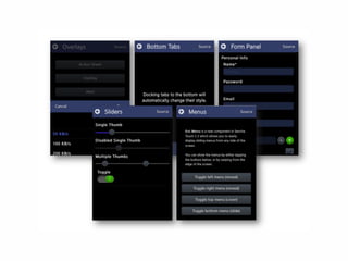 O documento apresenta as tecnologias Sencha Touch e PhoneGap para o desenvolvimento de aplicativos móveis multiplataforma. Sencha Touch é um framework HTML5 para criar interfaces ricas para dispositivos móveis, enquanto PhoneGap permite acesso a recursos nativos usando JavaScript. Apresenta exemplos demonstrando como essas tecnologias podem ser usadas juntas para criar aplicativos híbridos que rodam em múltiplas plataformas.