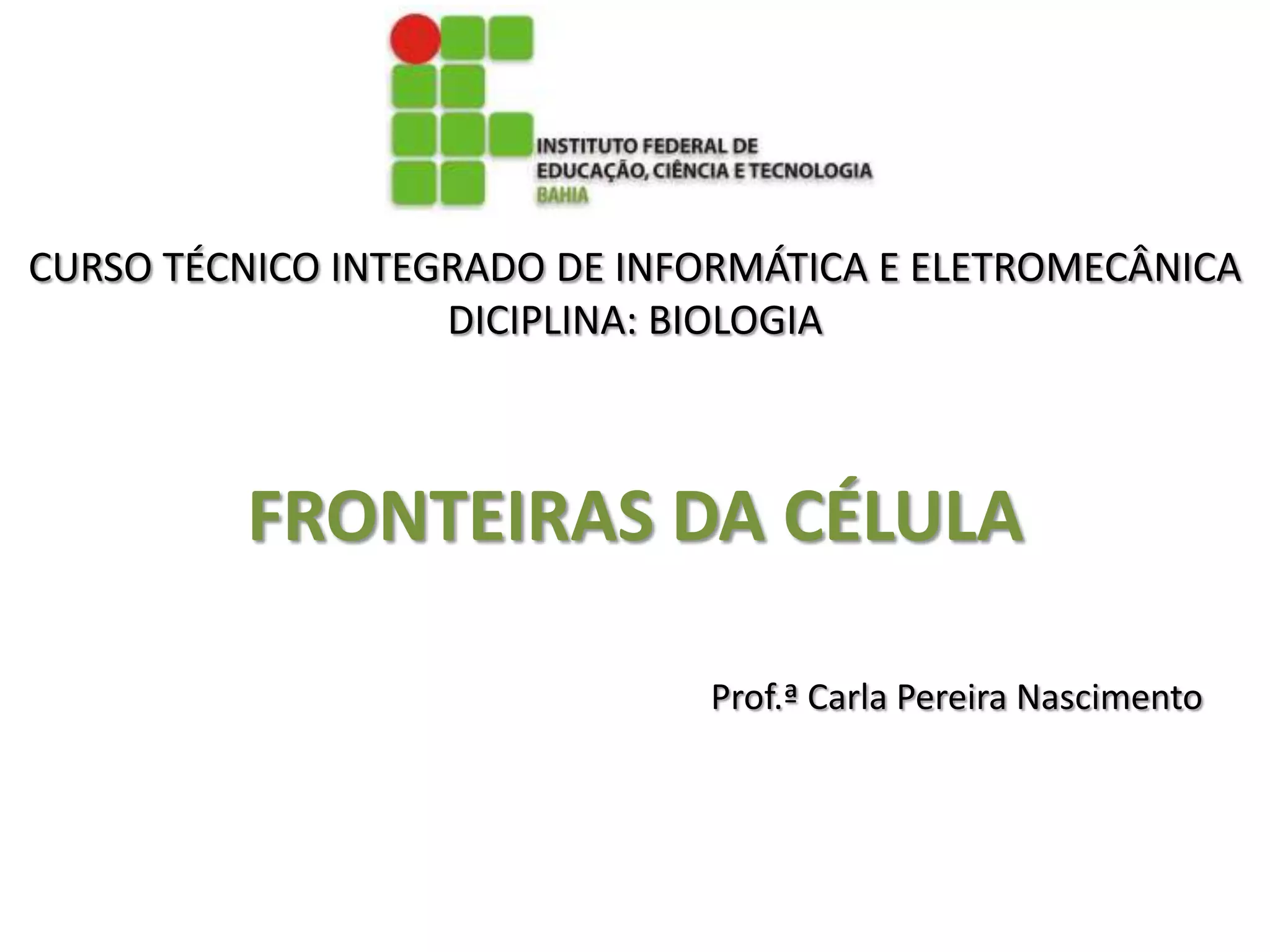 O documento discute as fronteiras da célula, incluindo a membrana plasmática, seus transportes passivo e ativo, endocitose, exocitose e envoltórios externos como o glicocálix e paredes celulares. A professora então pede aos alunos que respondam perguntas do capítulo sobre o assunto em duplas.