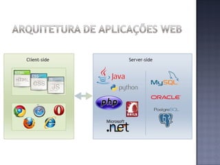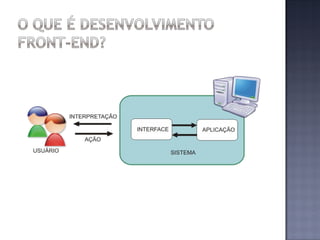 Edy Segura é um engenheiro de web formado pela UNIFEI em 2008 e bacharel em ciência da computação pela FAI em 2006. O documento discute o desenvolvimento front-end, incluindo HTML, CSS, JavaScript e onde as aplicações web estão presentes, como navegadores, dispositivos móveis e serviços web, e propõe o desenvolvimento de uma mini-aplicação para cálculo de IMC.