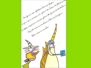 As crianças da escola criaram uma história fantástica baseada no texto "Gigões e Anantes", na qual fruxas e badas, duas espécies de feiticeiras, possuem características e habilidades diferentes. As fruxas fazem magia sem motivo e andam devagar, enquanto as más badas gostam de magia perigosa e são feias.
