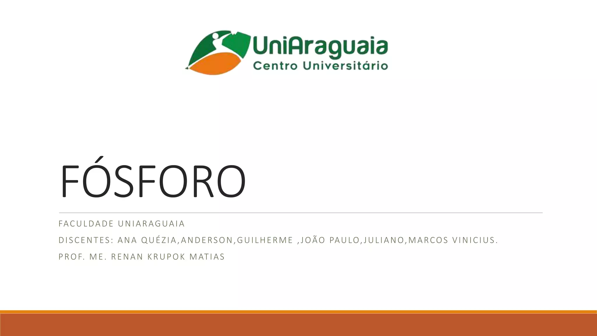 O documento discute as propriedades, aplicações e importância do fósforo. O fósforo é um elemento químico essencial para plantas e animais, sendo parte importante do DNA, ossos e dentes. Ele também desempenha um papel fundamental na agricultura, onde é usado como adubo para aumentar a produtividade das lavouras.