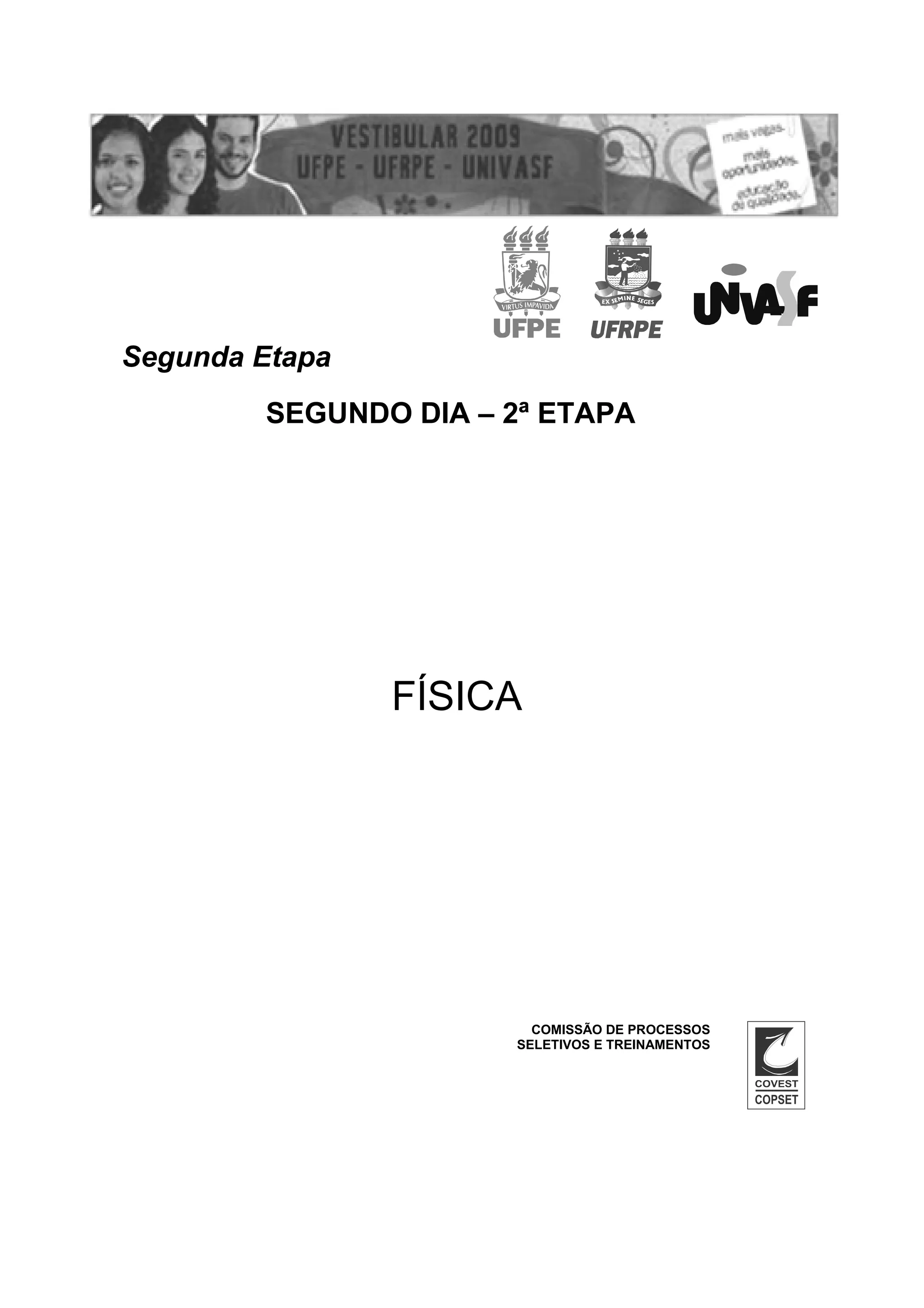 1) O documento apresenta 15 questões de física sobre tópicos como mecânica, termodinâmica, eletromagnetismo e física atômica.