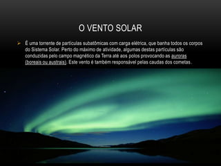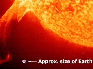O Sol é uma bola de gás ionizado com 5 bilhões de anos que é a fonte de energia mais próxima da Terra. Sua luz permite a fotossíntese e torna possível a vida na Terra, e libera uma enorme quantidade de energia a cada segundo. A superfície do Sol, a fotosfera, é onde a radiação escapa para o espaço, e acima dela fica a coroa com temperaturas de milhões de graus.