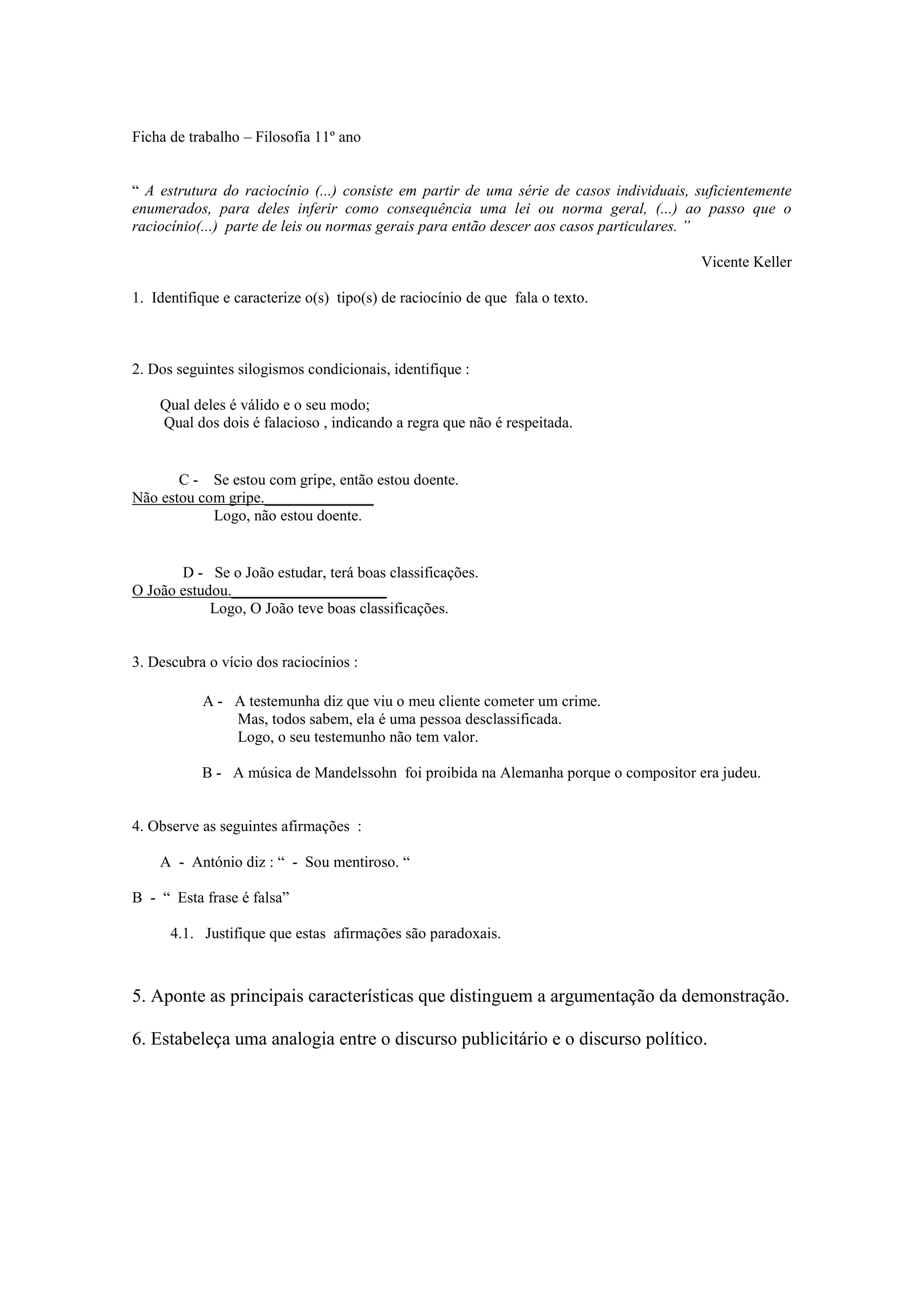1. Identifique e caracterize o(s) tipo(s) de raciocínio de que fala o texto.