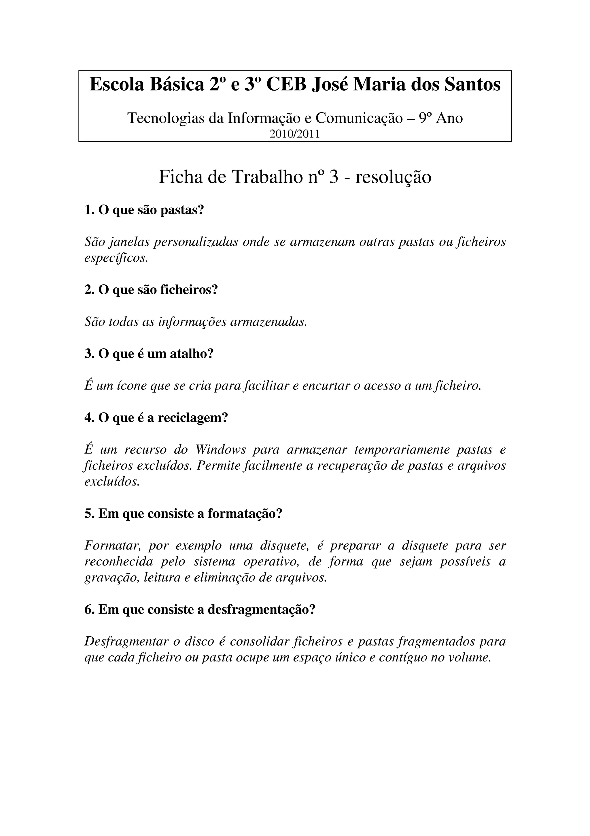 Este documento explica conceitos básicos de sistemas de arquivos como pastas, ficheiros, atalhos, reciclagem, formatação e desfragmentação. Pastas são janelas para armazenar outras pastas ou ficheiros, enquanto ficheiros contêm informações armazenadas. Atalhos facilitam o acesso a ficheiros e a reciclagem permite recuperar itens excluídos temporariamente. Formatar prepara um dispositivo para armazenamento e desfragmentar consolida arquivos fragmentados.