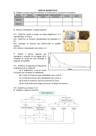 6.1. Classifica, quanto à origem, as rochas magmáticas 1 e 2