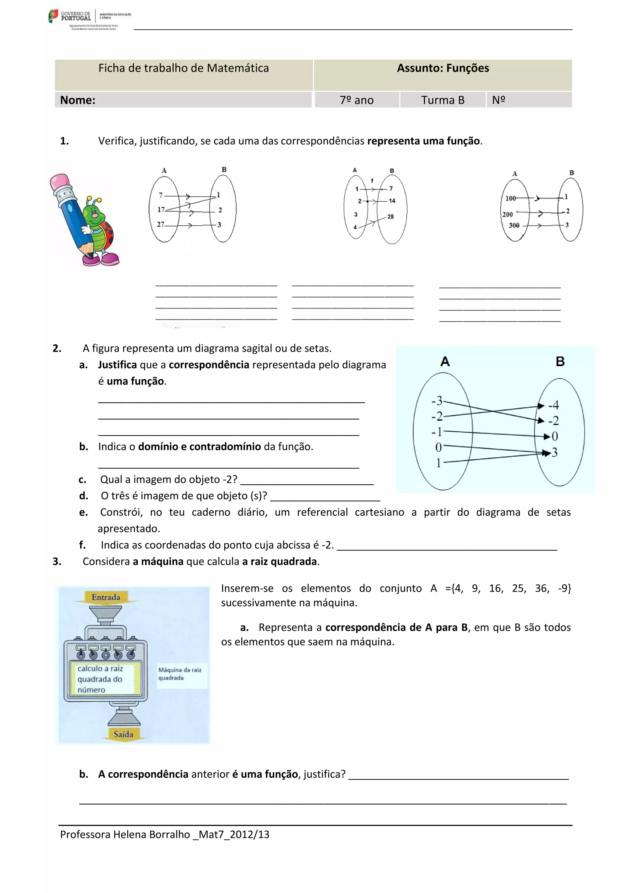 2) Introduz vocabulário específico sobre funções como objetos, imagens, domínio e contradomínio.