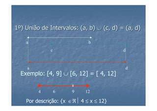 2) São descritas as operações de união, intersecção e diferença entre intervalos, bem como exemplos ilustrativos.
