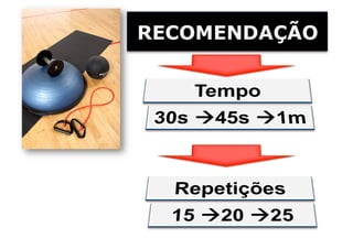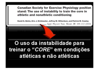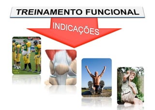 O documento discute o treinamento funcional, definindo-o como a reprodução eficiente dos gestos motores da vida diária e esportes. Apresenta seus objetivos, características, pilares e subsistemas, analisando artigos científicos sobre o treinamento com instabilidade e a ativação muscular. Recomenda a progressão do treinamento com instabilidade e o uso de pesos livres.