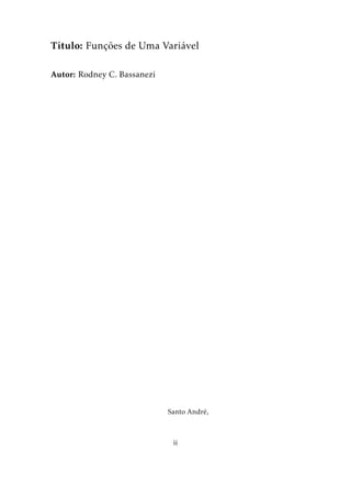 O documento descreve um livro sobre funções de uma variável. O livro aborda tópicos como números, funções, limites e continuidade, derivadas, integral e aplicações destes conceitos. O sumário lista os capítulos e subseções que compõem o conteúdo do livro.