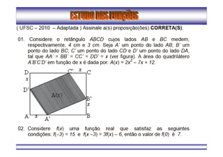 3) Elementos que compõem uma função como domínio, contradomínio e conjunto imagem.