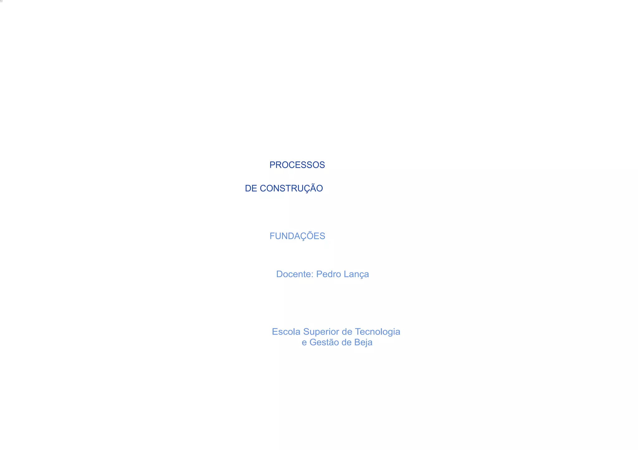 Este documento fornece informações sobre fundações para edifícios. Aborda os seguintes tópicos: 1) aspectos a considerar na escolha do tipo de fundação, como solicitações, características do terreno e limitações construtivas; 2) estudos geotécnicos para avaliar a adequação do terreno; 3) tratamentos de solo que podem ser necessários; 4) tipos de fundações como superficiais, semi-diretas e profundas. O documento é parte de um curso sobre física de edifícios ministrado por Pedro