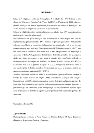 Este documento discute parâmetros de projeto para fundações, incluindo ensaios de campo e laboratoriais para determinar características de resistência e deformação do solo. Correlações entre resultados de ensaios são apresentadas, como a correlação entre o número de pancadas SPT corrigido e a densidade relativa de areias. O documento também fornece correlações entre densidade e ângulo de atrito interno para areias.