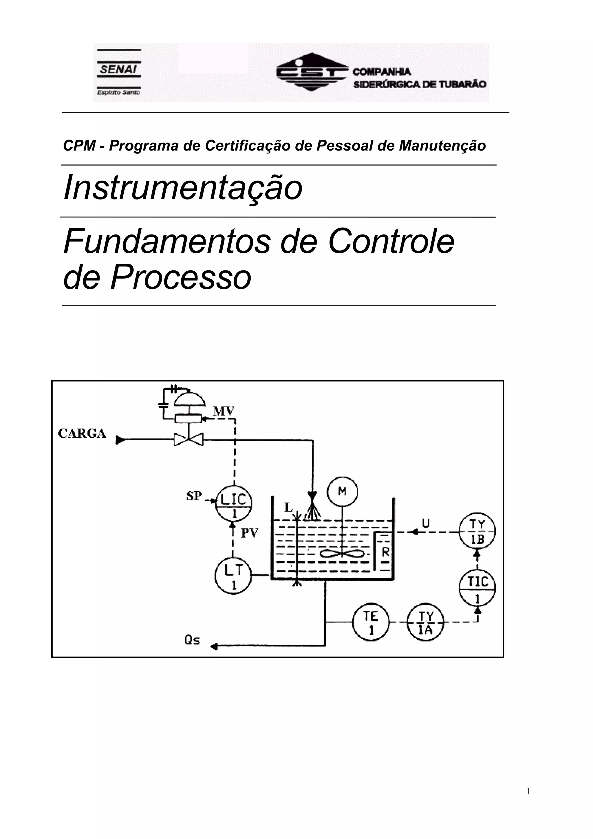 1) O documento discute os fundamentos básicos de controle de processo, incluindo conceitos, tipos de controle, características de processos industriais e ações de controle.