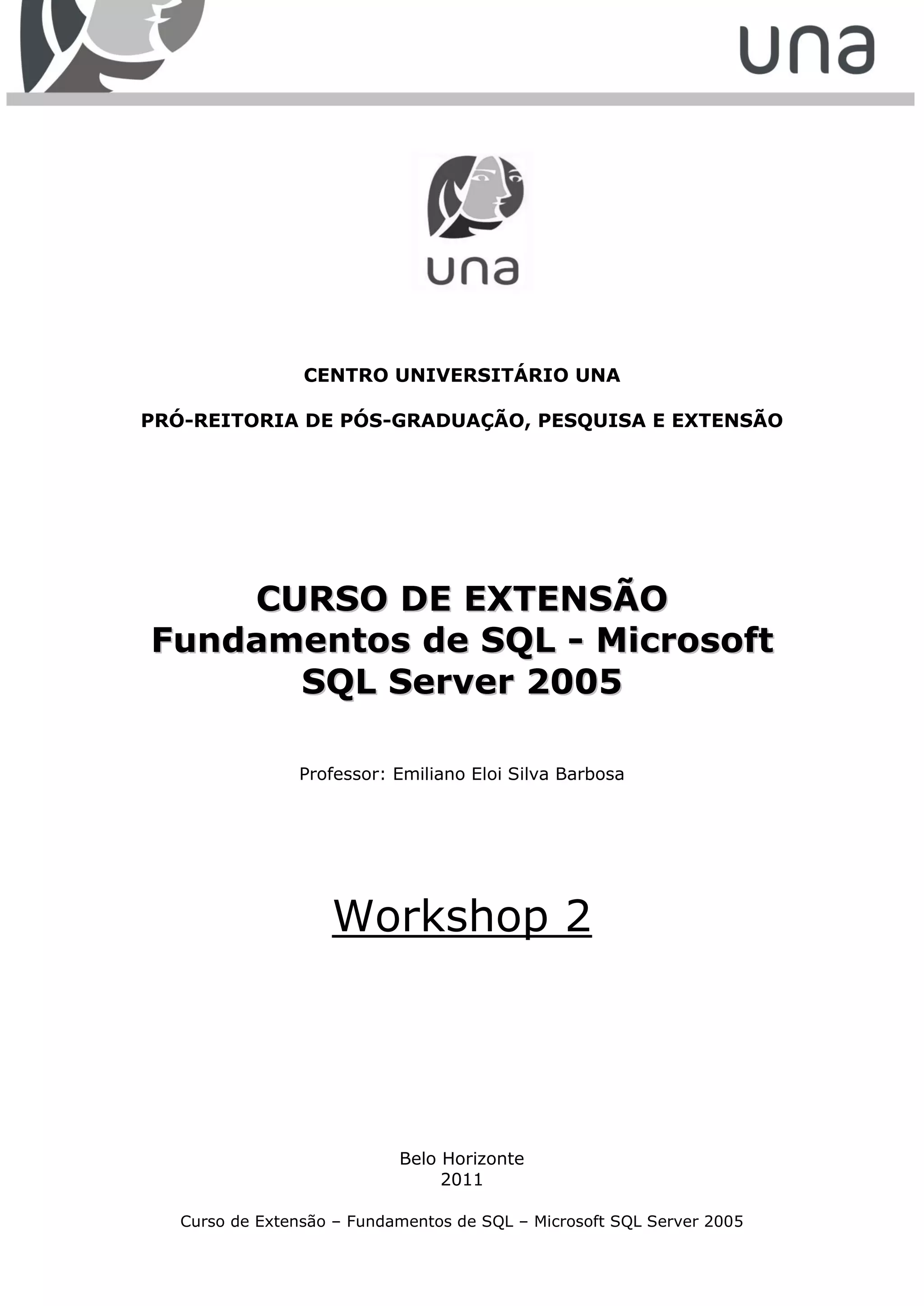 1) O documento descreve um workshop sobre manipulação de dados usando SQL Server 2005.