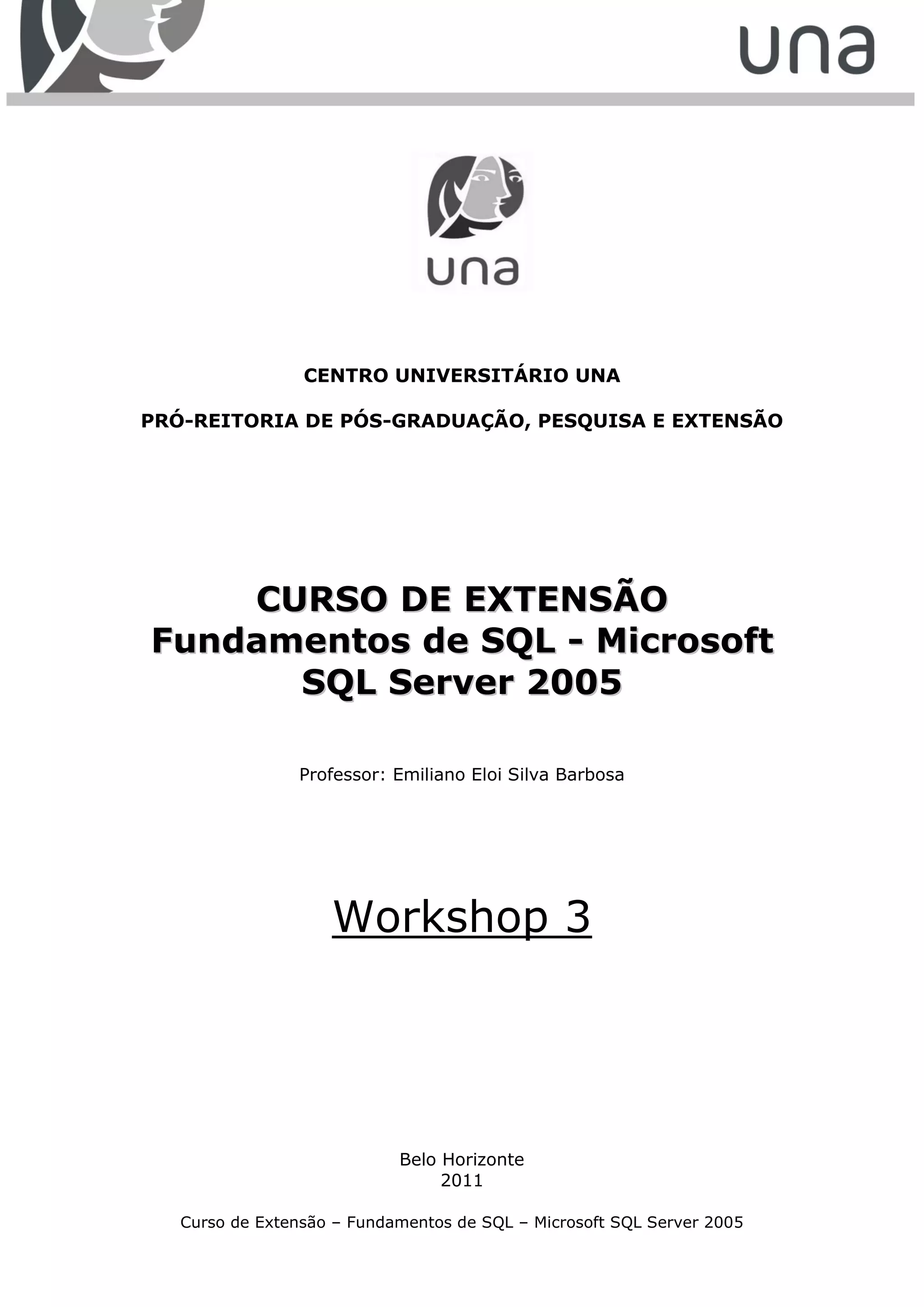1) O documento apresenta um workshop sobre SQL Server com exemplos de tabelas de músicos, instrumentos e países e instruções SQL.