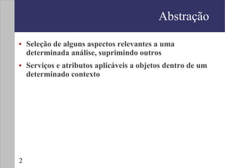 O documento discute os fundamentos e princípios do projeto orientado a objetos, abordando conceitos como abstração, classes e objetos, encapsulamento, herança, polimorfismo, relacionamentos entre classes, interdependência, qualidade de projeto e princípios como responsabilidade única, aberto-fechado, substituição de Liskov, inversão de dependência, reuso por composição e segregação de interface.