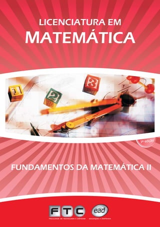 Este documento apresenta os fundamentos de funções afins, quadráticas, exponenciais e logarítmicas. Inclui definições dessas funções, propriedades, gráficos e resolução de equações envolvendo essas funções. O documento é dividido em seções tratando separadamente de funções afins e quadráticas, funções exponenciais e funções logarítmicas. Exercícios são fornecidos no final de cada seção para aplicação dos conceitos apresentados.