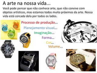 2. Aborda temas como a arte aplicada, as linguagens artísticas, elementos da linguagem visual como ponto, linha, cor e contraste.