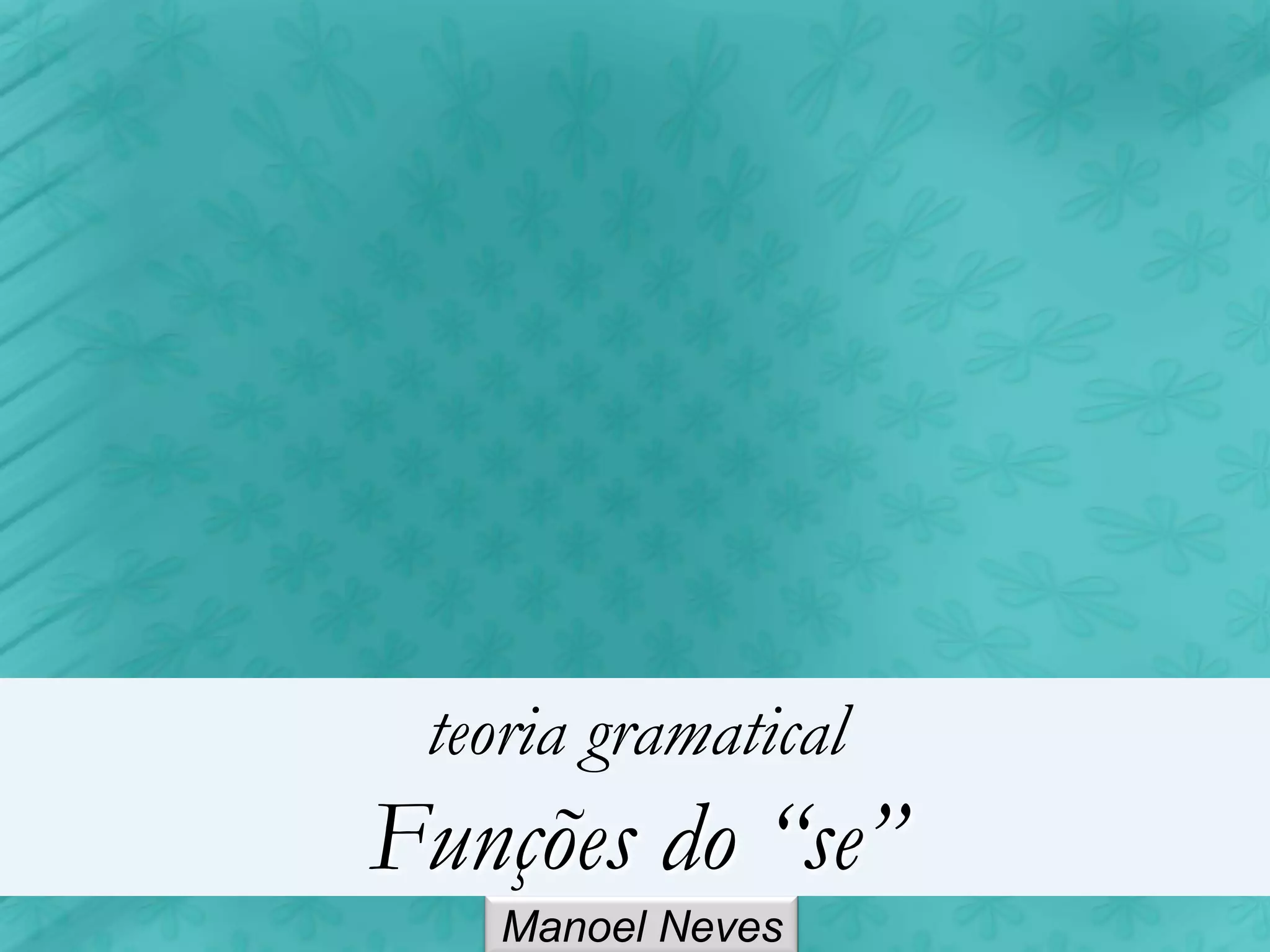 Este documento descreve as principais funções do pronome "se" na língua portuguesa. O "se" pode funcionar como pronome apassivador, índice de indeterminação do sujeito, pronome reflexivo, conjunção subordinativa, partícula integrante de verbos e partícula expletiva. Exemplos ilustram cada uma das funções do "se".