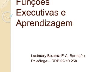 O documento discute as funções executivas e como elas se desenvolvem. Define funções executivas como um conjunto de processos cognitivos que permitem direcionar comportamentos a metas, avaliar estratégias e resolver problemas. Explica que as funções executivas se desenvolvem principalmente na infância e adolescência e podem ser treinadas, trazendo benefícios como maior autonomia e habilidades sociais.