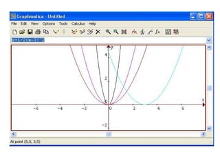 3) Os alunos irão reconhecer o Graphmatica e construir vários gráficos comparando-os com y=x2 para entender como as transformações afetam o gráfico.