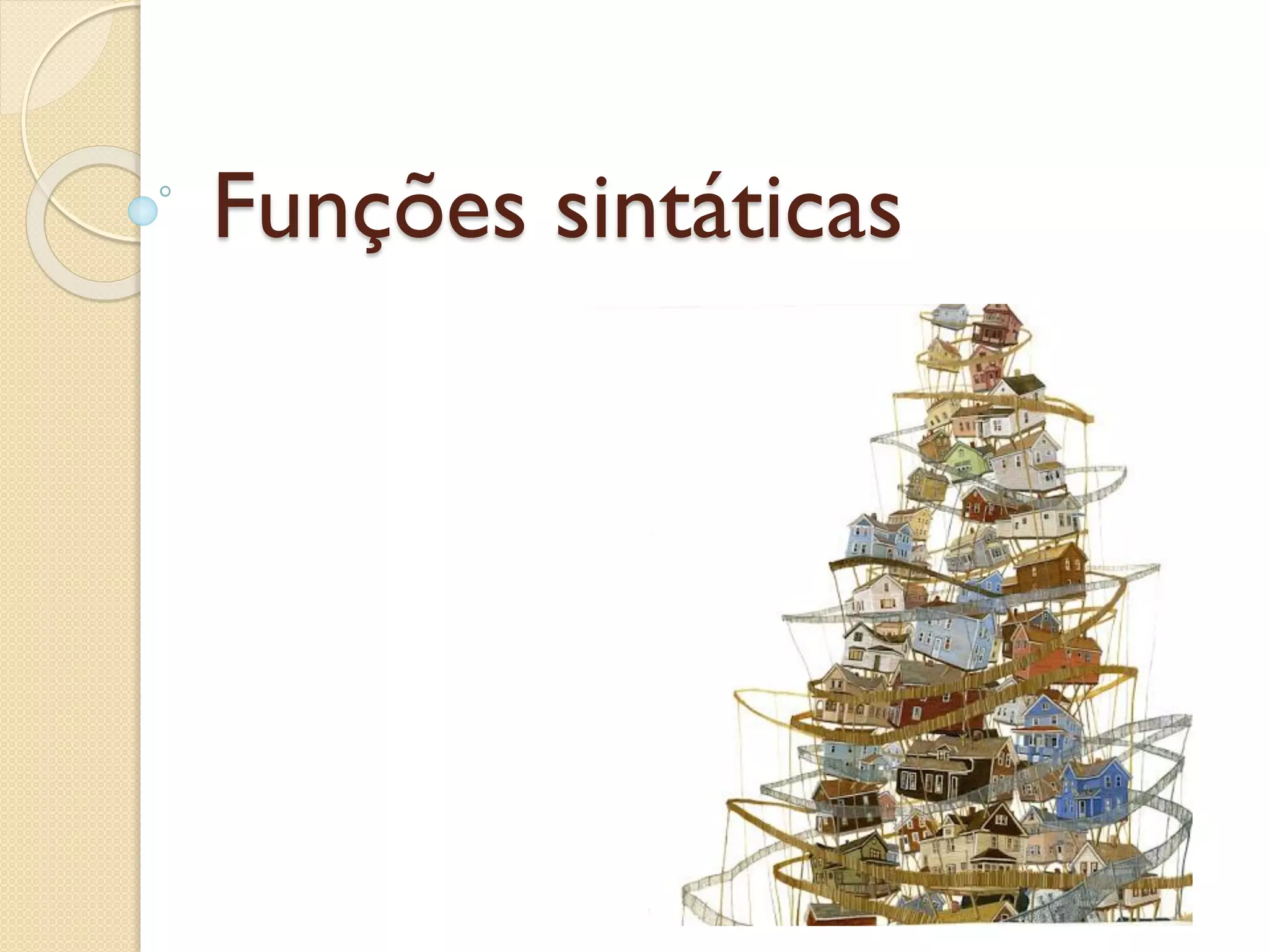 O documento discute as principais funções sintáticas em português, incluindo: 1) o grupo nominal sujeito, 2) o predicado, 3) as funções internas ao grupo verbal como complemento direto e indireto, e 4) as funções internas ao grupo nominal como modificador.