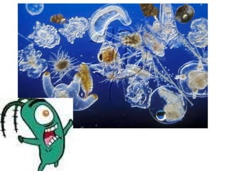 O documento descreve as principais características dos fungos e algas. Os fungos são heterótrofos, decompositores e causam doenças em animais e plantas. As algas são autótrofas, fotossintéticas e formam o fitoplâncton, base das cadeias alimentares aquáticas.